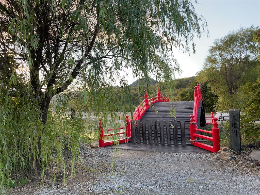 その入口にある宇曽利湖から流れる川を渡す「太鼓橋」